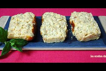 Mezclamos todo muy bien y lo ponemos en un molde rectangular (o redondo al gusto) y cocemos al baño maría durante 40 minutos. Para comprobar si está cocido, pinchamos con una brocheta y si no sale limpia le damos 10 minutos más.