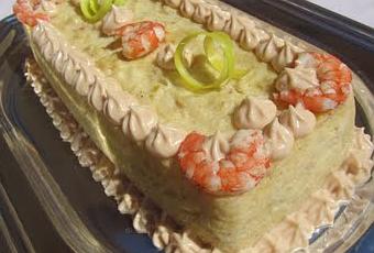 DEJAMOS ALGÚN LANGOSTINO PARA EL ADORNO, EN MOLDE ENGRASADO LISTO PARA LLEVAR AL MICRO