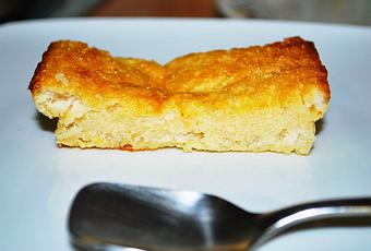 Os pongo la receta original, porque pienso que vale la pena hacerlo más grande (que el mío no duró ni un asalto. Ilusa de mi, lo hice para desayunar, y no llegó ni a la cena...).Con una bola de helado, o chocolate fundido.... ya ni os cuento como tiene que estar, pero sino, así sin más está buenísimo. Ingredientes:12 rebanadas de pan de molde con corteza (yo lo usé SIN corteza, porque no tenía del otro.. Realmente no se cuál sería la diferencia en el resultado....)200 ml (1 vaso) de nata para cocinar2 huevos100 gramos de azúcarCanela en polvoMantequilla/margarinaPreparación:Engrasamos con la mantequilla o margarina un molde rectangular para el horno."En un bol grande mezclamos y batimos los huevos, el azúcar, la nata y una cucharadita de canela en polvo (si os gusta más la vainilla pues reemplazad la canela por esencia de vainilla).Depositáis una a una las rebanadas de pan de molde sobre la mezcla hasta que empapen, dándoles la vuelta para que se mojen por ambos lados. Luego las vais colocando en el fondo del molde, para ir formando capas hasta finalizar todas las rebanadas.Precalentáis el horno a 180 grados y con 30 minutos será más que suficiente. Sacáis el pastel del horno, lo dejáis enfriar a temperatura ambiente y directo al frigorífico. Cuando esté frío lo podéis desmoldar. Está realmente espectacular." ¡Y yo doy fe de que es verdad!(no se si la foto os dará aspecto de “seco”... tengo que deciros que PARA NADA!)