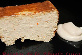 - En un bol ponemos los palitos de cangrejo, el atún con su aceite, los huevos y la nata. - Lo batimos con la batidora. - Untamos un molde rectangular con mantequilla, sobre ella ponemos papel vegetal y vertemos en el la mezcla anterior. - Horneamos en el horno precalentado a 180º durante unos 30 minutos. - Entretanto hacemos la mayonesa, la reservamos en el frigorífico. - Dejamos enfriar un poco y lo metemos en el frigorífico. - Servimos frio con un poco de mayonesa.