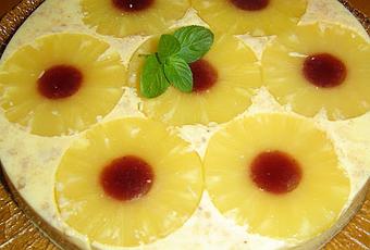 En el fondo del molde ponemos las rodajas de piña,