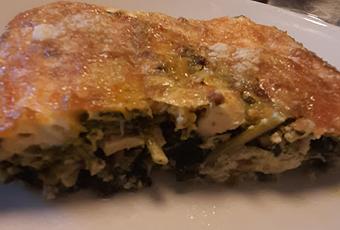 Hoy para aprovechar una pechuga de pollo asado y un atado de espinacas que me trajo mi hija, he preparado esta receta de aprovechamiento, si no tienes restos de pollo asado, se puede cocer o asar la pechuga.