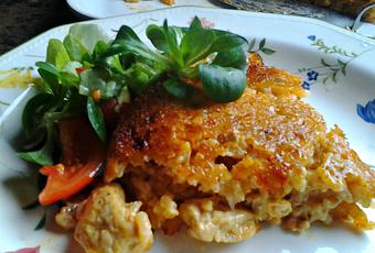 Una combinación horneada como si fuera un pastel , ideal como entrante o plato principal con una buena ensalada ....MARIMI