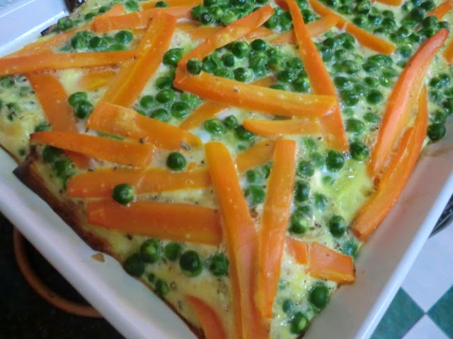 Metemos el pastel en el horno, calor arriba y abajo a media altura durante 15 o 20 minutos, hasta que cuajen los huevos. Temperatura, 180º.