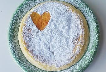 Preparamos un molde redondo, engrasado con aceite y forrado con papel vegetal. Separamos las yemas de las claras. Tapamos las claras con papel film y las guardamos en la nevera. Precalentamos el horno 170°C. Derretimos el chocolate blanco al baño maría, incorporamos el queso crema y mezclamos bien. Añadimos las yemas y mezclamos hasta incorporarlas por completo. Sacamos las claras de la nevera y las montamos con unas varillas eléctricas hasta que estén bien firmes. Las incorporamos a la mezcla (no de golpe si no en 3 veces), mezclamos con una espátula, con cuidado, con movimientos envolventes. Echamos la masa en el molde y lo depositamos sobre la bandeja del horno. Echamos un poco de agua caliente sobre la bandeja. Lo metemos en el horno con cuidado. Horneamos 15 minutos a 170°C , luego bajamos a 160°C y lo tenemos otros 15 minutos y por último lo tenemos otros 15 minutos con el horno apagado. Transcurrido el tiempo lo sacamos y lo dejamos enfriar. Desmoldamos con cuidado y lo servimos con azúcar glass por encima.