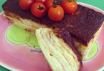 - Y repetir pan de molde empapado, jamón york, doble de queso, jamón york y terminar con una última capa de pan de molde.