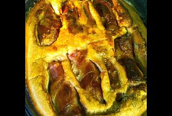 En Gibraltar se puede comprar el pudding Yorkshire ya hecho a falta de agregarle leche pero aquí en España yo no lo he visto pero el pudding Yorkshire es fácil de preparar. Puedes seguir nuestra receta a la que según nuestro molde y la cantidad de salchichas tienes que poner el doble de cantidad a la receta de puddings Yorkshire que tenemos en otra entrada de este blog.