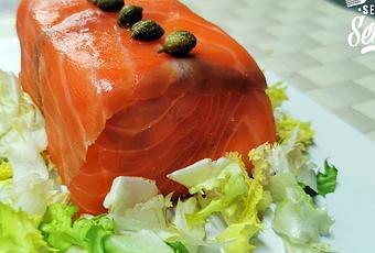 6.- Dobla los trocitos de salmón que sobresalen de tu molde, y déjalo enfriar en la nevera hasta que llegue la hora de servirlo en la mesa.