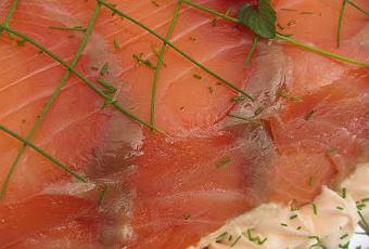 Forrar con lonchas de salmón ahumado , sin que queden huecos. (gastaréis unos 200 gr.). Quedará adherido perfectamente al plástico. Reservar.