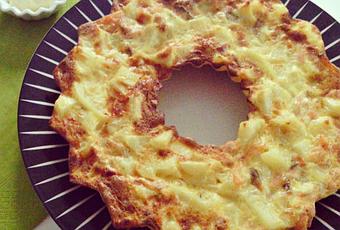 - Batir los huevos y añadir el salmón, la nata , el eneldo ( si lo ponéis ), el queso y las patatas con cebolla y mezclar bien todos los ingredientes.
