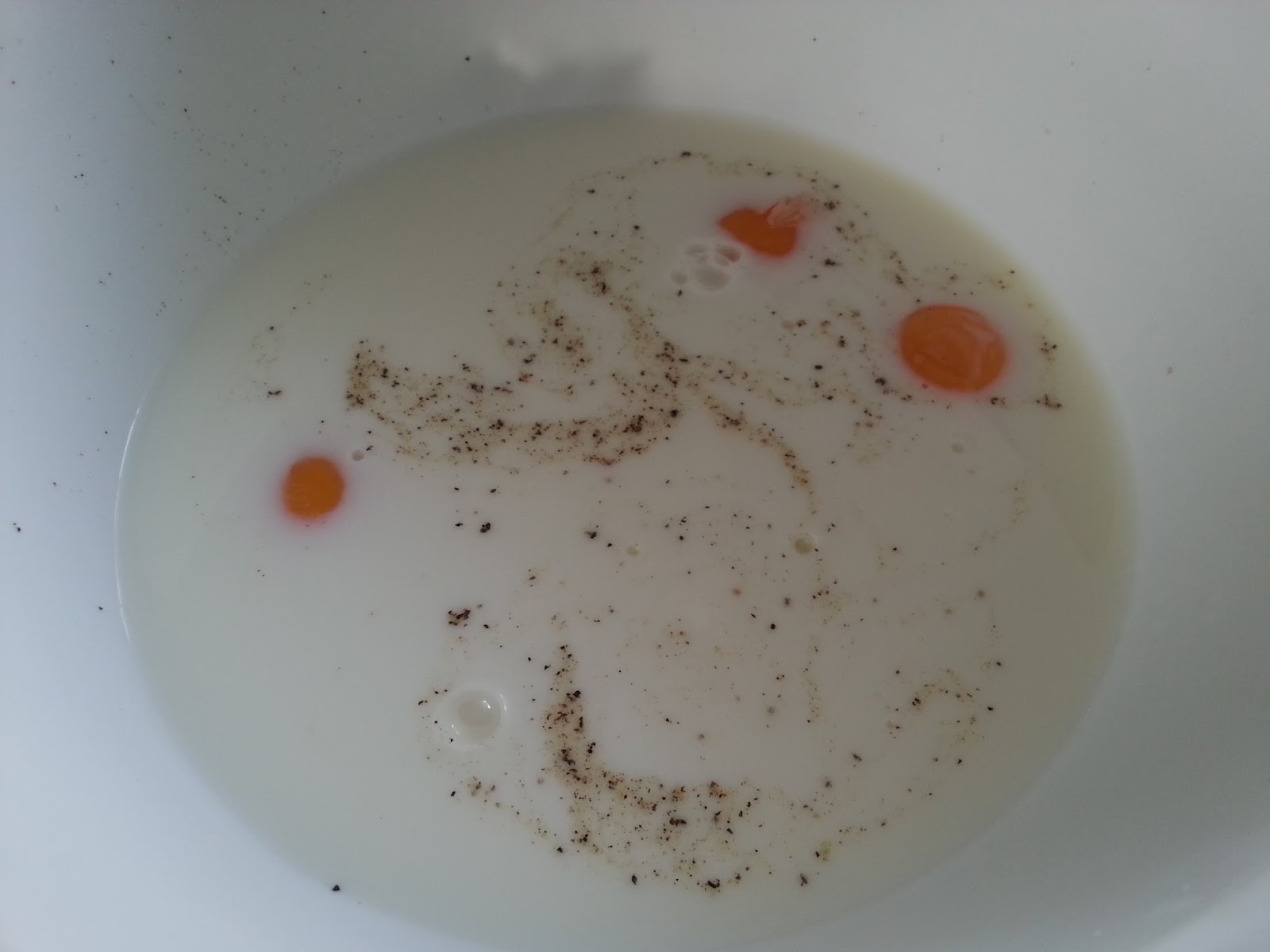 2. - Batimos la leche con los huevos, un poco de sal y pimienta y lo mezclamos.