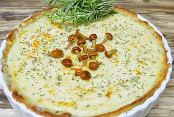 Ponemos la mezcla de setas, pollo y bechamel, extendiéndola por todo el molde y encima colocamos el puré de patatas, espolvoreamos con queso rallado y lo introducimos al horno a 200º entre 20 y 25 minutos.
