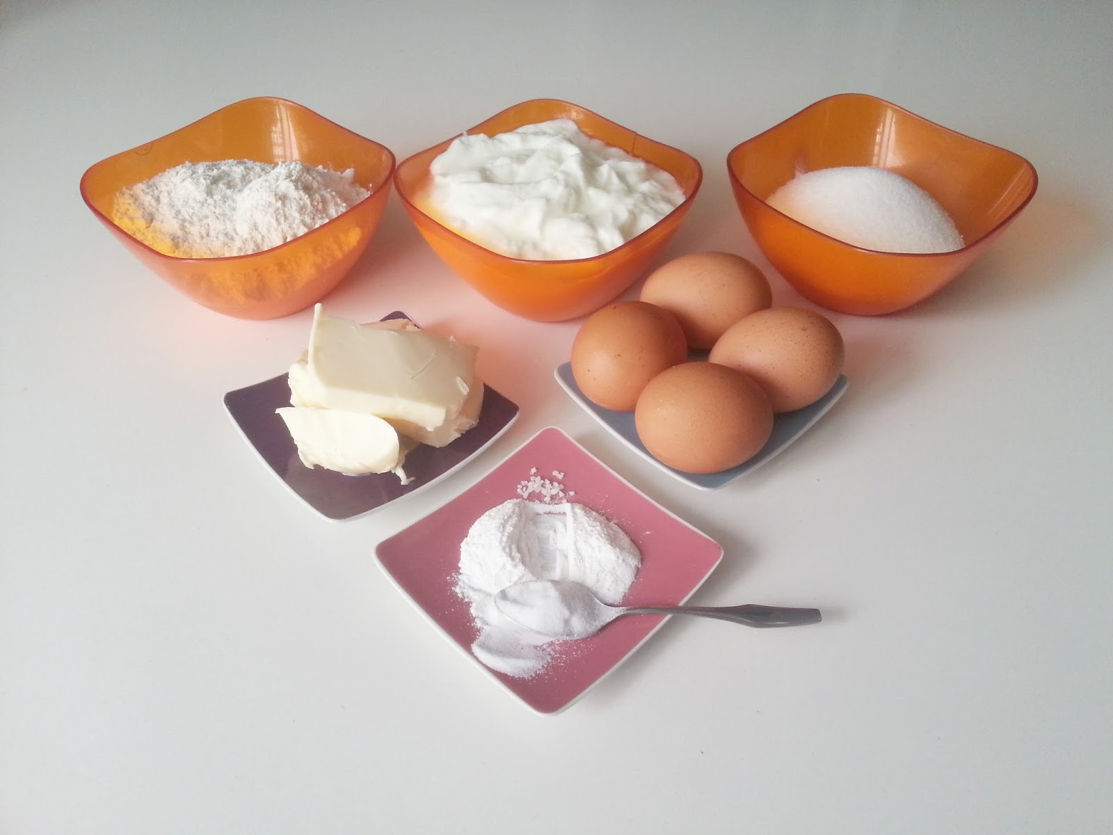 175gr de harina 500 gr de yogur natural sin azúcar (si es cremoso mejor)100 gr de mantequilla a temperatura ambiente200 gr de azúcar4 huevos2 cucharadas de cafe de levadura en polvo1 cucharadita de cafe de bicarbonatouna pizca de sal