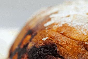 Cortamos los croissants por la mitad, a lo largo, y cubrimos la base de un cuenco con parte de ellos.