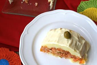 Este pastel es una renovación de este rollo de patata y bonito .