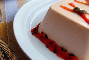 - Servimos el pastel frío, decorado con pimiento rojo asado, perejil y cebollino picado.