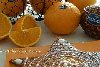 INGREDIENTES2 huevos L, 80 gr de harina para bizcocho, 80 gr de almendra molida en polvo, 100 gr de azúcar, la ralladura de una naranja, 1 naranja y 40 gr de mantequilla sin sal.Para mojar el bizcocho: el zumo de ½ naranja.Glasa: 2 cucharadas de azúcar glas y 1 cucharadita de zumo de naranja.PREPARACIÓNPonemos una naranja entera en una olla cubierta de agua. Cerramos y llevamos al fuego. Cuando la bailarina gire, ponemos medio fuego y la tenemos 15 minutos. Apagamos el fuego y dejamos otros 15 minutos con el calor de la placa.Pelamos, retiramos la piel y molemos la pulpa, reservamos.Precalentamos el horno a 170-180ºCEn un bol ponemos los huevo, montamos bien con el azúcar, cuando ya estén cremosos le añadimos la harina tamizada y la almendra. Mezclamos con cuidado. Le añadimos la ralladura de naranja y la pulpa molida. Por último le incorporamos la mantequilla fundida y mezclamos con cuidado.Vertemos en el molde con forma de estrella y horneamos 30 minutos.Dejamos enfriar sobre unas rejillas.Cuando esté frío lo desmoldamos al plato de presentación. Empapamos con el zumo de naranja y dejamos reposar para que absorba bien el jugo 1 hora.Glasa: mezclamos bien los ingredientes y hacemos la decoración.