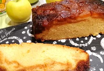 PASTEL INVERTIDO DE MANZANA CARAMELIZADA CON MERMELADA DE MELOCOTÓN