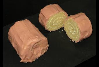 Ponemos papel de horno en una bandeja apta para horno y echamos la mezcla y alisamos. Metemos al horno durante 10 minutos a 170 grados. Sacamos, esperamos un par de minutos y enrrollamos con el propio papel de horno.
