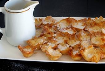 Hace tiempo publiqué aquí mi intrepretación de los famosos Pastéis de Belem. Sabemos que es una receta secreta cuya mezcla de ingredientes conocen muy pocas personas, por lo que los míos se parecen o no, lo único que sé que en mi casa tienen exitazo cada vez que los preparo. Hoy los he hecho de bocado, con otro formato y pasta filo. Los he probado en varios sitios esta primavera ¿recordáis los post de Lisboa, aquí, aquí, aquí y aquí? y he decidido que me gustan más los míos (jejeje, !!qué humilde) porque son menos dulces que los portugueses. Se hacen en muy poco tiempo por lo que os animo a prepararlos.