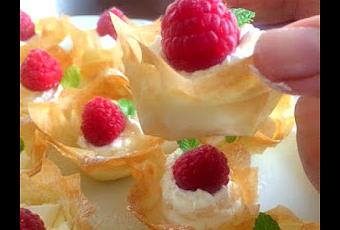 - 13 ó 14 frambuesas ( pueden ser trocitos de fresas o arándanos)- hojitas de menta para decorar.