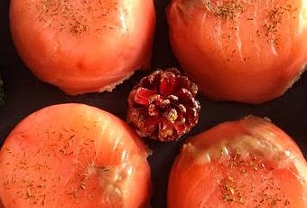 Ponemos una loncha de salmón, cortamos el sobrante y: