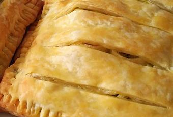 Practicar unos cortes en las restantes láminas de hojaldre y colocar encima de las otras ya rellenas, sellando bien los bordes con un tenedor.