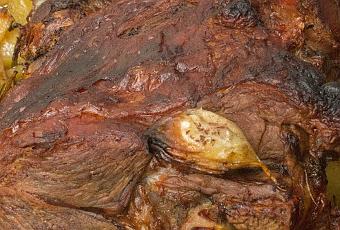 Mételo al horno a 180º durante una hora, abriendo de vez en cuando para bañarlo en salsa.