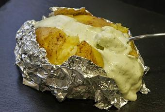 Coja el numero de patatas que desee pero procurando que sean del mismo tamaño ya que el tiempo de horneado depende del tamaño de la patata no del numero. Limpie las patatas de impurezas pero conservando la piel. Lave las patatas bajo el agua, séquelas levemente dejando que se queden un poco húmedas ya que esa humedad ayudara a que se asen las patatas. Coloque las patatas en pedazos de papel de aluminio individuales, salpimiéntelas y envuélvalas bien. Precaliente el horno a 200ºC y una vez caliente inserte las patatas dentro. El tiempo de cocción depende del tamaño de las patatas y oscila entre los 40 minutos para las patatas más pequeñas y 60 para las patatas más grandes. Una vez asadas las patatas, sáquelas del horno, ábralas por la mitad y desmenuce el interior de la patata procurando no destrozar la piel. A continuación diluya la mayonesa con un poquito de agua para conseguir una textura muy cremosa pero con cuidado de que no se nos agüe demasiado. Salpimiente el interior de la patata y vierta la mayonesa sobre esta conservando un poco para el final. Remueva bien la patata para que se mezcle con la mayonesa y para terminar eche una cantidad abundante de mayonesa sobre esta hasta que vea que chorrea por los lados. Sirva la patata sola o como guarnición estrella del plato que ha preparado.