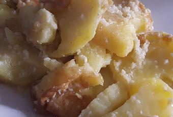 - Machacamos los ajos, las almendras, las sal y el perejil. Cubrimos las patatas con esta mezcla