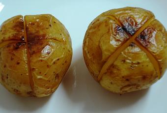 Ingredientes:- 3/4 Patatas medianas por persona- Aceite de oliva- Sal Elaboración:Precalentar el horno. Lavar las patatas y hacerles unos cortes como en la foto.Ponerlas en una bandeja de horno y rociarlas con un poco de aceite.Hornear a 180º por arriba y abajo con ventilador durante una hora. A mitad cocción darles la vuelta.Servir sacadas del horno. Añadir sal y aceite de oliva al gusto.
