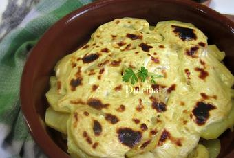 Un rico gratinado con salsa de mostaza cuya idea he tomado prestada de mi querida Nuria, aunque, finalmente he realizado algunos cambios en la salsa y la he gratinado sobre rodajas de patata en lugar de servirla con patatas enteras asadas. Cualquier opción, manera o forma de comerlas es válida porque la salsa de mostaza aporta un delicioso sabor a las patatas!! Para prepararlas de esta manera necesitamos: