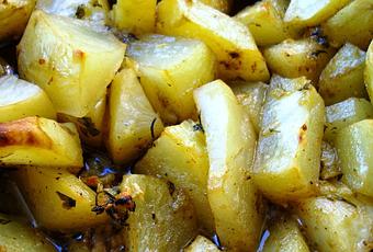 4º Mezclar las patatas con el aliño y hornear durante 35 minutos a 200º.