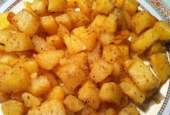 Las patatas al horno están muy buenas pero tardan bastante en hacerse y en este horno no sé qué pasa que tardan más y se quedan como secorras, ja, ja, sí, sí, secorras.