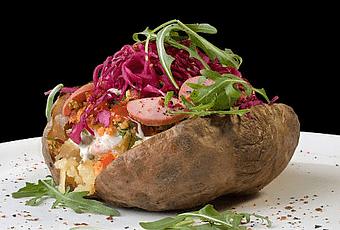 Dando una vuelta por la feria, nos hemos encontrado con uno de esos puestos que venden patatas asadas rellenas, que tienen una pinta estupenda. Pues ya que nunca había probado, nos decidimos a probarlas, y la verdad es que están buenísimas.