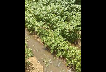 No se han detectado daños en las patatas, salvo en alguna en el comienzo atacada por los topillos y aulguna agujereada por los escarabajos de las patatas, pero el resto que llevamos arrancadas apenas tienen un rasguño. Se siguen regando puesto que aun no se han secado las matas del todo y asi evitamos que se cuezan con esta calor que nos acompaña.