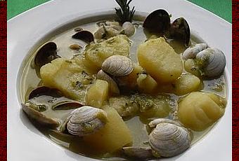 PICADA DE AJO Y PEREJIL, CEBOLLA Y PIMIENTO PICADOS, CHIRLAS Y PATATAS CHASCADAS