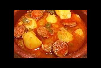 Pelamos las patatas y chascar para que suelten todo su almidón . Es hora de poner las cucharaditas de pimentón y de pimiento choricero . Salamos y dejamos que se dore un poco .