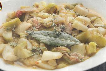 de laurel. Deja cocer a fuego suave 5 minutos más. Sirve el guiso aderezado con más tomillo o perejil."Buen Provecho"