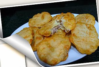 Esta es una receta que hacía más de veinte años que no elaboraba. Tuve que mirar la receta porque no me acordaba de todos los ingrediente. Esta receta es de divinacocina.INGREDIENTES:400 g de carne magra y de ternera picada1 cebolla1 tomate grande maduro150 ml de vino blancoUnos piñonesSal, nuez moscada y pimienta negraAlguna hierba aromática yo le añadido tomilloPatatas una variedad para freír. Las usaremos en rodajas Aceite de oliva virgenHuevo Harina ELABORACIÓN DEL RELLENO:Prepararemos el sofrito en una sartén con aceitecon la cebolla picadita muy fina y el tomate pelado y rallado. Añadiremos la carne al sofrito y los piñones salteamos durante unos minutos para que tome color. Salpimentaremos y añadiremos la nuez moscada y las hierbas. Conla espumadera iremos soltando la carne desmenuzada un poco para que quede bien desmenuzada.Cuando la salsa reduzca y espese estará listo el relleno.ELABORACIÓN PARA LAS PATATAS:Pelaremos las patatas y las cortaremos en rodajas de unos 4 – 5 milímetros, aproximadamente. No más gruesas porque tienen que quedar manejables. Hay que confitarlas primero en aceite sin que lleguen a dorarse. Solo tienen que estar tiernas pero deben quedar un poco enteras. Luego las terminaremos de freír. Una vez blandas las escurriremos bien de aceite.Pondremos un poco de carne sobre una rodaja. Colocaremos otra encima y presaremos los bordes. Las patatas así montadas las pasaremos por huevo batido y harina y las freiremos en aceite caliente a fuego medio. Las doraremos hasta que queden doraditas.