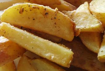 4. Ponemos al fuego una sartén con abundante aceite de oliva, cuando esté caliente añadimos las patatas, el fuego ha de estar medio-alto. Cuando estén doradas las ponemos en un plato con una servilleta de papel para que escurra el aceite y servimos. Si queremos podemos sazonarlas con algo más de sal.