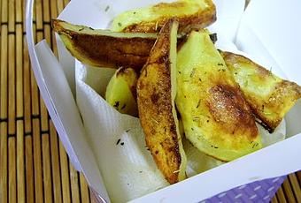 - 2 Patatas medianas- 1/2 cucharada de pimentón- Orégano- Tomillo- Romero- Sal- Aceite de oliva virgen