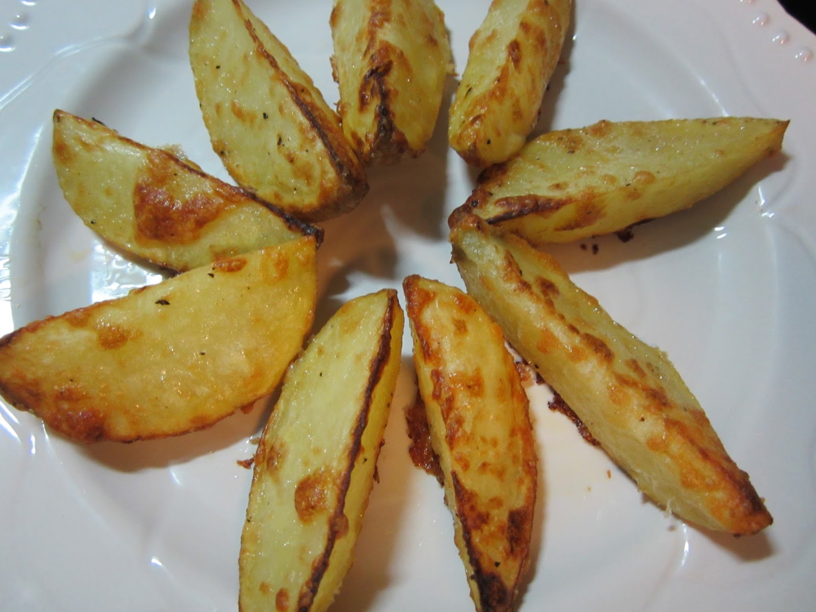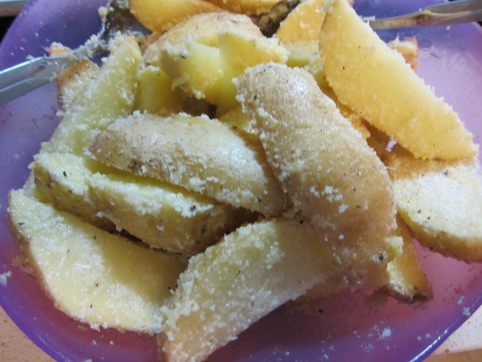 Cortamos las patatas a gajos y las mezclamos con parmesano y las salpimentamos.