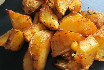 Las colocamos en un pirex y al hornos a 180 grados hasta que estén doradas por fuera pero blanditas por dentro, aproximadamente unos 15-20 minutos dependiendo de como sean las patatas de gruesas.