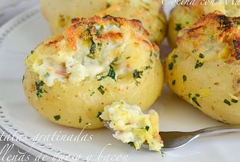 Éstas patatas están llenas de sabor, y sólo hay que ver lo cremoso del relleno para que se nos haga la boca agua. Además si le echamos imaginación seguro que le podéis dar un toque muy personal y original.