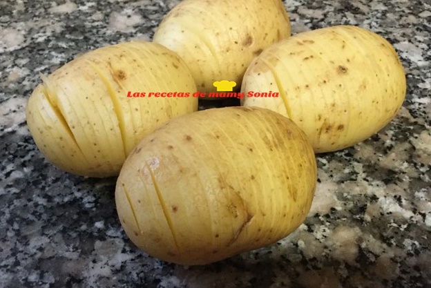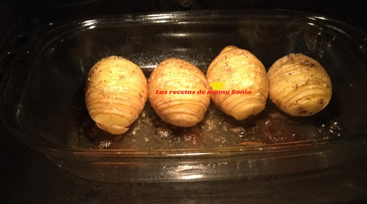 Estas patatas llevaba muchísimo tiempo queriéndolas hacer pero no me atrevía la duda de que tal quedarían me echaba para atrás y por fin me he decidido, y la verdad que me alegro, porque no sabéis como huele toda la casa mientras se están haciendo, es que el olor es uhmm.