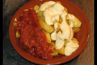 Ingredientes:- 3 patatas medianas.- Aceite de oliva virgen extra.- Sal.- Salsa brava:o Un vaso de tomate.o 1 guindilla o un poco de tabasco.o 1 cucharadita de pimentón dulce.o Sal.o 2 dientes de ajo.o Un cuarto de cebolla.o Aceite de oliva.- Salsa ali oli:o Un huevo.o 300 mililitros de aceite de girasol.o 1 diente de ajo.o Sal.o Medio limón. o Un chorro de aceite de oliva.