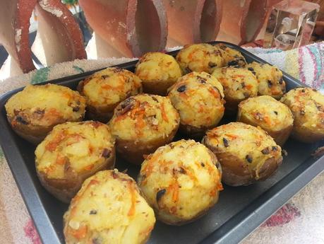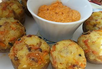 - Rellenamos las patatas con el puré y las horneamos en horno precalentado a 180ºC durante 20-30 minutos.