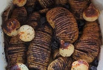 Hola a tod@s, hoy vengo con el acompañante perfecto de nuestro menú de Navidad, unas deliciosas patatas Princesa Amandine cocinadas al estilo Hasselback, una delicia de receta, quedan muy bonitas, elegantes y están buenísimas. Las patatas son de la mejor calidad, son del tipo de patata nueva, tiene un gusto delicado, la textura es muy tierna y sedosa. En resumen, es una apuesta segura para acompañar nuestro pavo, o pularda o algún pescado al horno, que hayamos escogido como plato principal. Además son muy versátiles y quedan deliciosas también al vapor, salteada, cocida y de muchas maneras.