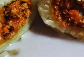 3.- Lavamos bien las patatas. Cortamos una cara de cada una. Con un sacabolas para frutas y verduras, extraemos el relleno, esté, (lo ponemos en remojo con agua). Rellenamos las patatas con la salsa boloñesa.4.- Cubrimos las patatas con la parte que le hemos cortado. Atamos cada una con hilo de cocinar. Precalentamos el horno a 180ºC. Las colocamos en una fuente de horno, vertemos un poco de aceite por encima. Salpimentamos y cubrimos la fuente con papel de aluminio. Cocinamos 50 minutos, hasta que estén tiernas.5.- Escurrimos los restos de patatas. En un cazo ponemos agua, la leche, la margarina, el diente de ajo, las patatas y las laminas de almendra. Cocinamos a fuego medio 30 minutos. Salpimentamos y añadimos la nuez moscada. Con el brazo trituramos las patatas.6.- Servimos las patatas rellenas con la crema. Picamos un poco de perejil sobre el plato. Si deseáis saber más de mi, estoy en: